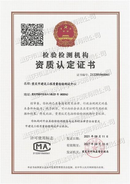 檢驗檢測機構(gòu)資質(zhì)認(rèn)定證書