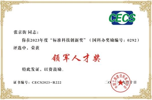 市建科院副總經理、總工程師張京街獲2023年度“標準科技創新獎領軍人才”稱號,一標準獲科技創新一等獎