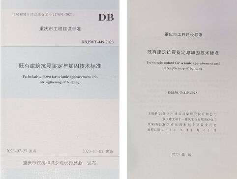 近日,由重慶設計集團所屬子企業重慶市建筑科學研究院有限公司主編的重慶地方標準《既有建筑抗震鑒定與加固技術標準》(DB50/TT-449-2023)正式發布實施。