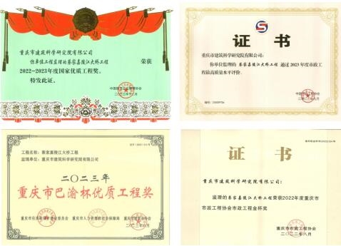 在蔡家嘉陵江大橋修建過程中,項目部創(chuàng)新性監(jiān)理工作,建立健全全壽命質(zhì)量控制體系,采用無人機進行項目智慧管理,利用數(shù)據(jù)信息對施工現(xiàn)場進行統(tǒng)一調(diào)配;采用智慧工程——建設工程協(xié)同管理平臺,將工程項目全生命周期中的信息模型、數(shù)據(jù)信息、管理資料等集合顯示處理,實現(xiàn)全過程協(xié)同管理,顯著提高工作效率;率先實行了二維碼唯一標識見證取樣管理制度,實現(xiàn)每一組試件、每一份報告均可溯源。項目獲評國家優(yōu)質(zhì)工程獎、市政工程最高質(zhì)量水平評價(原國家市政工程金獎)、重慶市市政工程金杯獎、三峽杯優(yōu)質(zhì)結(jié)構(gòu)工程獎、巴渝杯優(yōu)質(zhì)結(jié)構(gòu)工程獎、重慶市智慧工地示范項目。