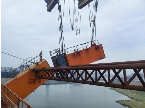 “拱肋已與Y構(gòu)懸臂精準(zhǔn)連接!”隨著地面對(duì)講機(jī)傳來(lái)激動(dòng)的聲音,在歷經(jīng)五個(gè)多小時(shí)吊裝作業(yè)后,3月26日,由重慶設(shè)計(jì)集團(tuán)市建科院公司監(jiān)理的潼南東升大橋南岸左幅首段拱肋節(jié)段精準(zhǔn)安裝就位,標(biāo)志著大橋正式進(jìn)入拱肋安裝階段,向提籃式鋼箱拱橋高精度合龍目標(biāo)邁進(jìn)重要一步。