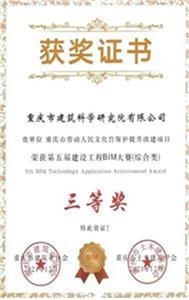 • 重慶市第五屆建設工程BIM大賽三等獎